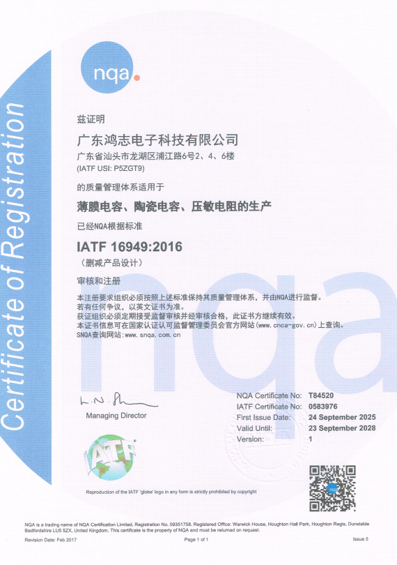 IATF16949汽車產(chǎn)品質(zhì)量體系證書