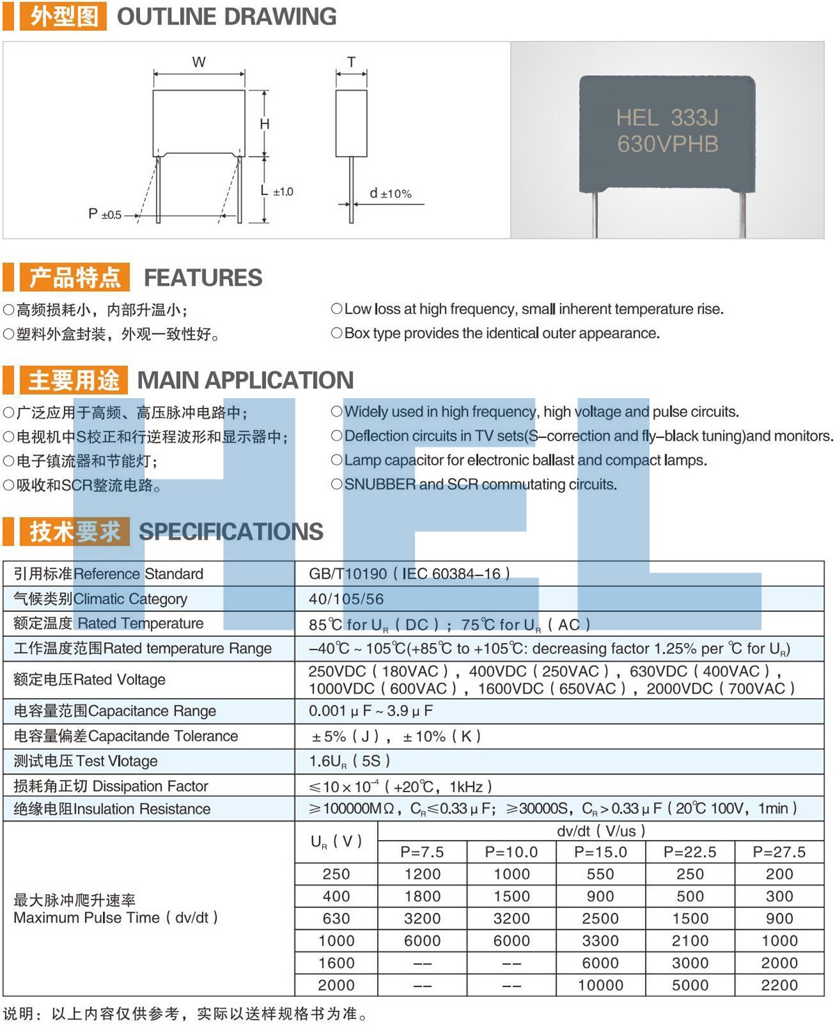 PHB塑料外盒雙面金屬化聚丙烯薄膜電容器 MMKP82
